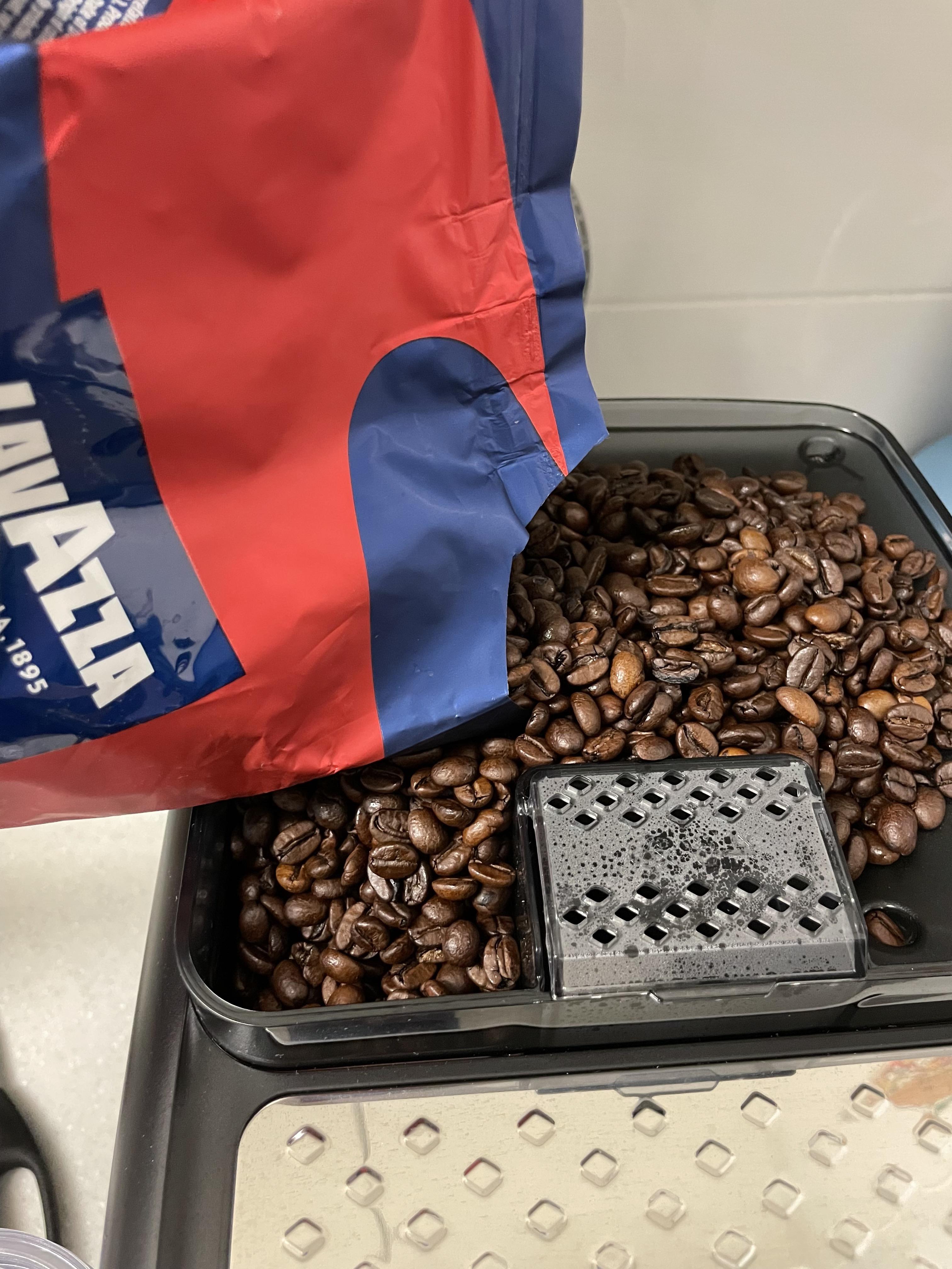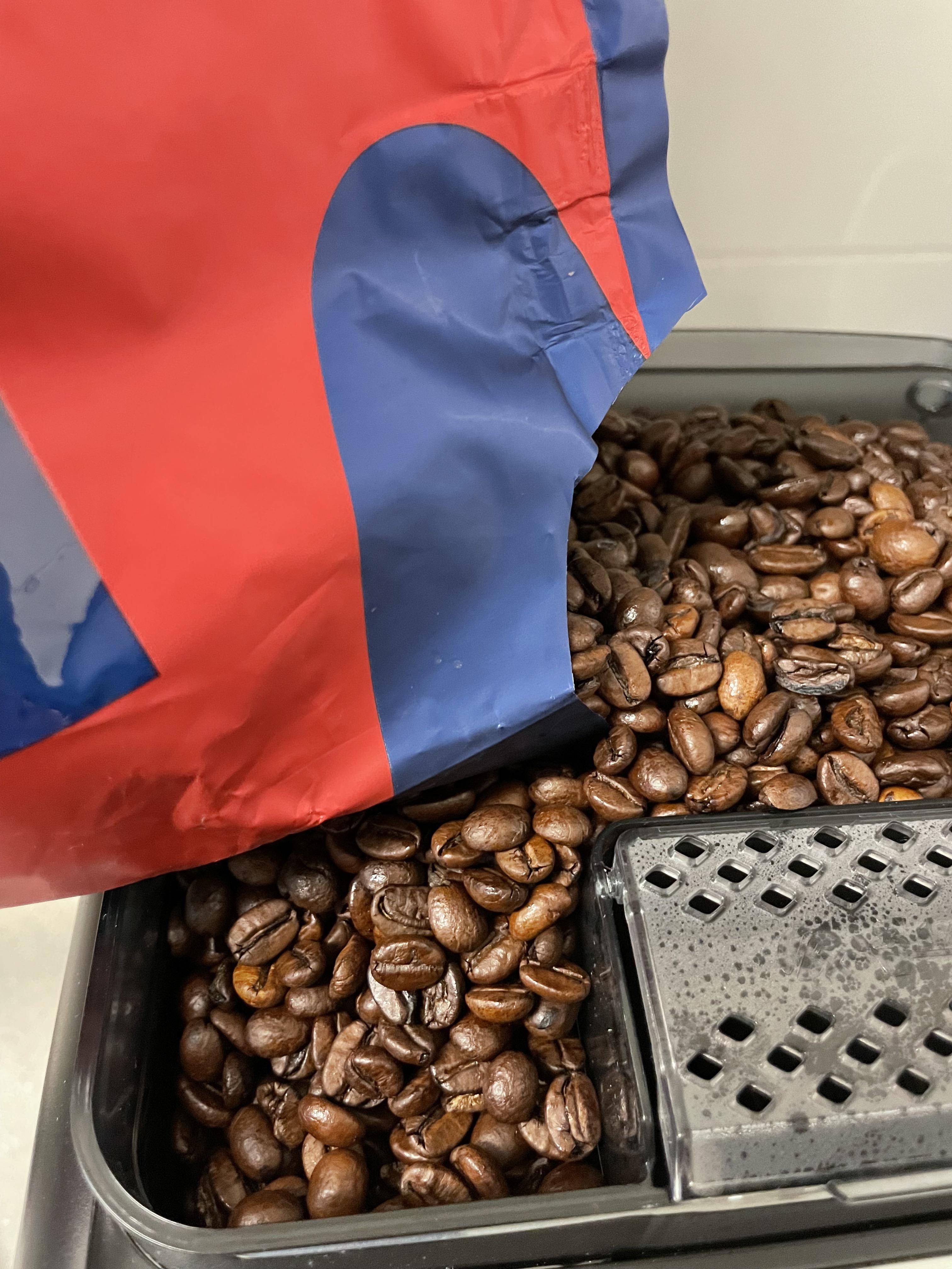 텅 비워가던 라떼고 5400 원두 통에 원두를 부어주었다.